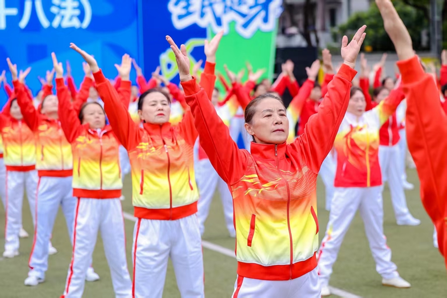 今天,马陆镇第三届市民运动会正式开幕,在全民健身展示活动中,全镇48支代表队、700余名运动员齐齐亮相,在练功十八法(续十八法)、健身操等展演环节斗志昂扬。压轴登场的优秀团队展演更是精彩不断:“老男孩”带来《英雄赞歌》,舞出家国情怀;青少年街舞《超燃节拍》彰显青春朝气;在2025年上海城市业余联赛获奖的“马踏飞燕”健身队,以操舞《奔跑吧中国》展现了对祖国的热爱与对健康生活的追求……马踏飞燕健身队队员陆佳佳表示:“这次表演的《奔跑吧中国》,传递了我们对新时代的祝福——大家一起奔跑,共享健康与快乐。”