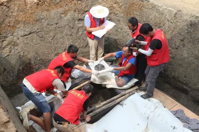 图为湖北云梦郑家湖墓地,考古队员们认真对待发掘出的文物。/采访对象供图