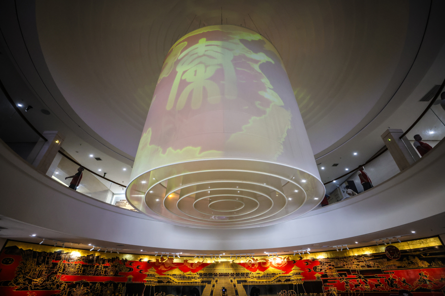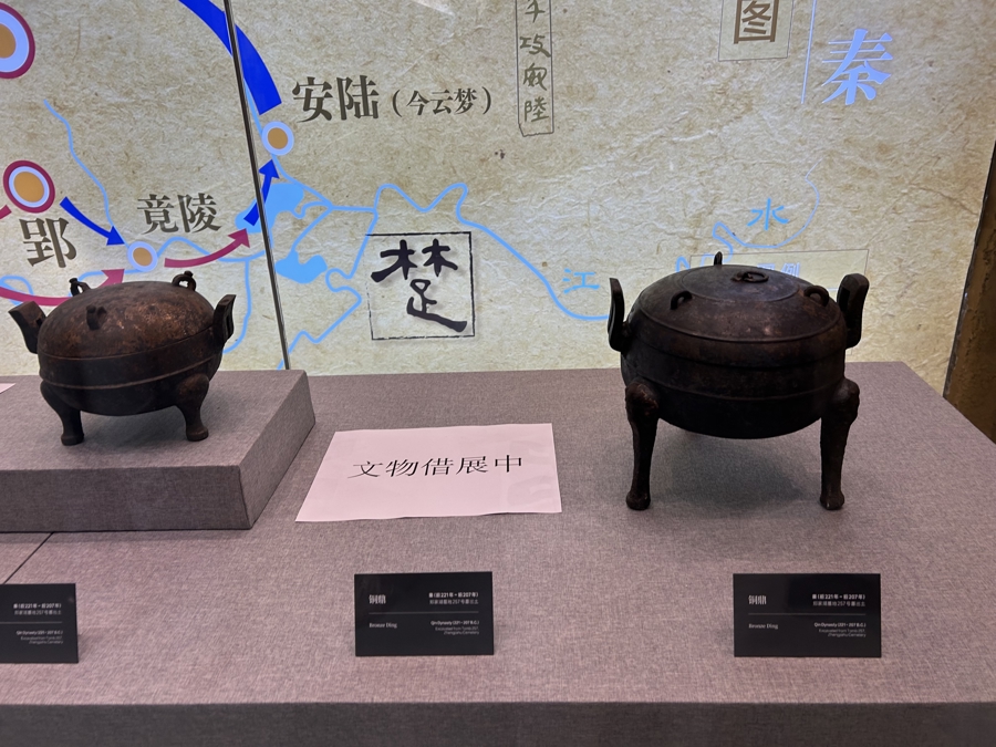 图为云梦县博物馆内,不同风格的铜鼎并列展陈。/王嘉旖摄